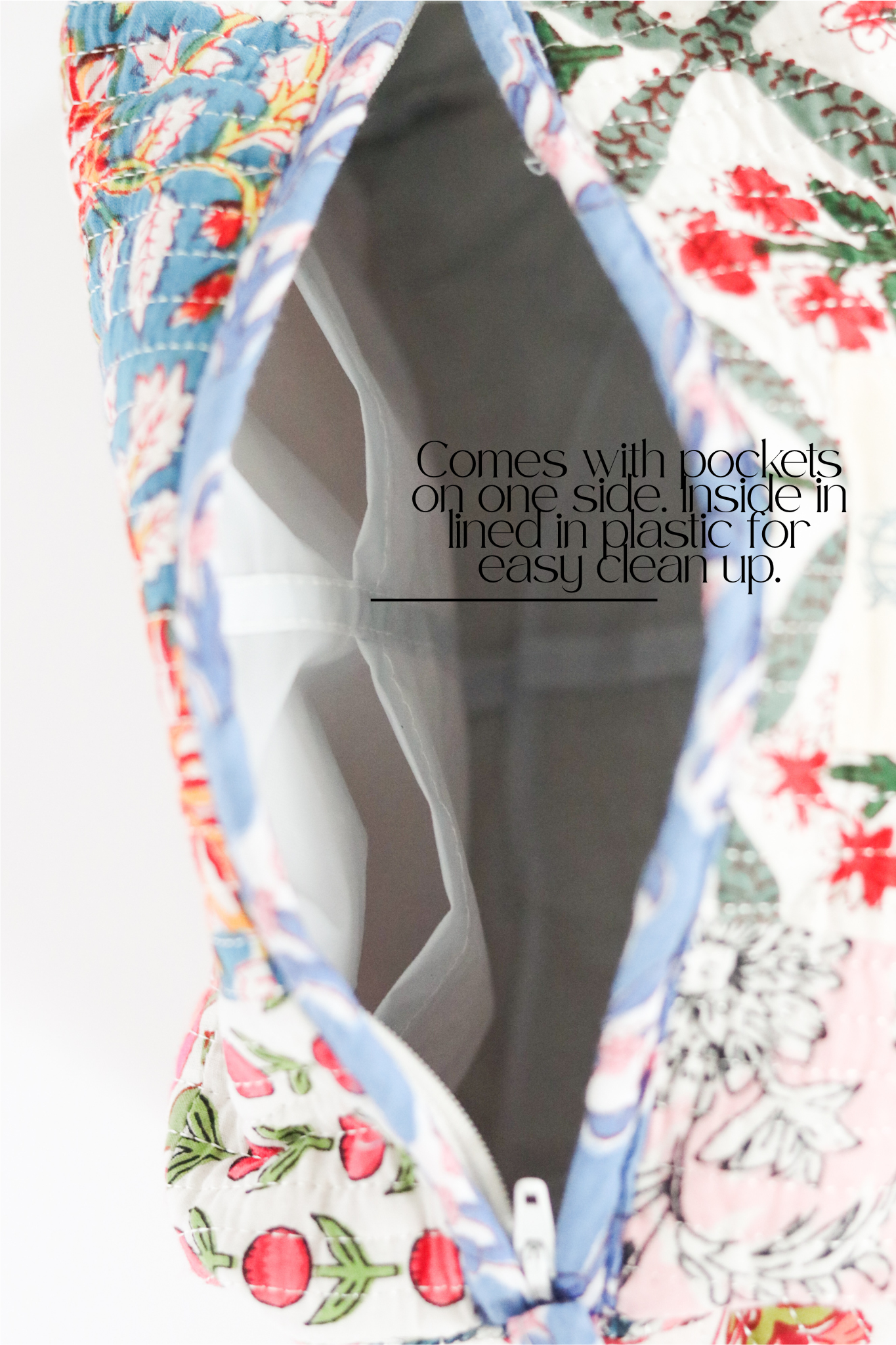 Each piece is hand crafted and block printed by artisans, making it truly one of a kind and filled with timeless charm. The block printing process may have variations in color, printing, and fabric as part of the handmade process which is what makes each product unique.