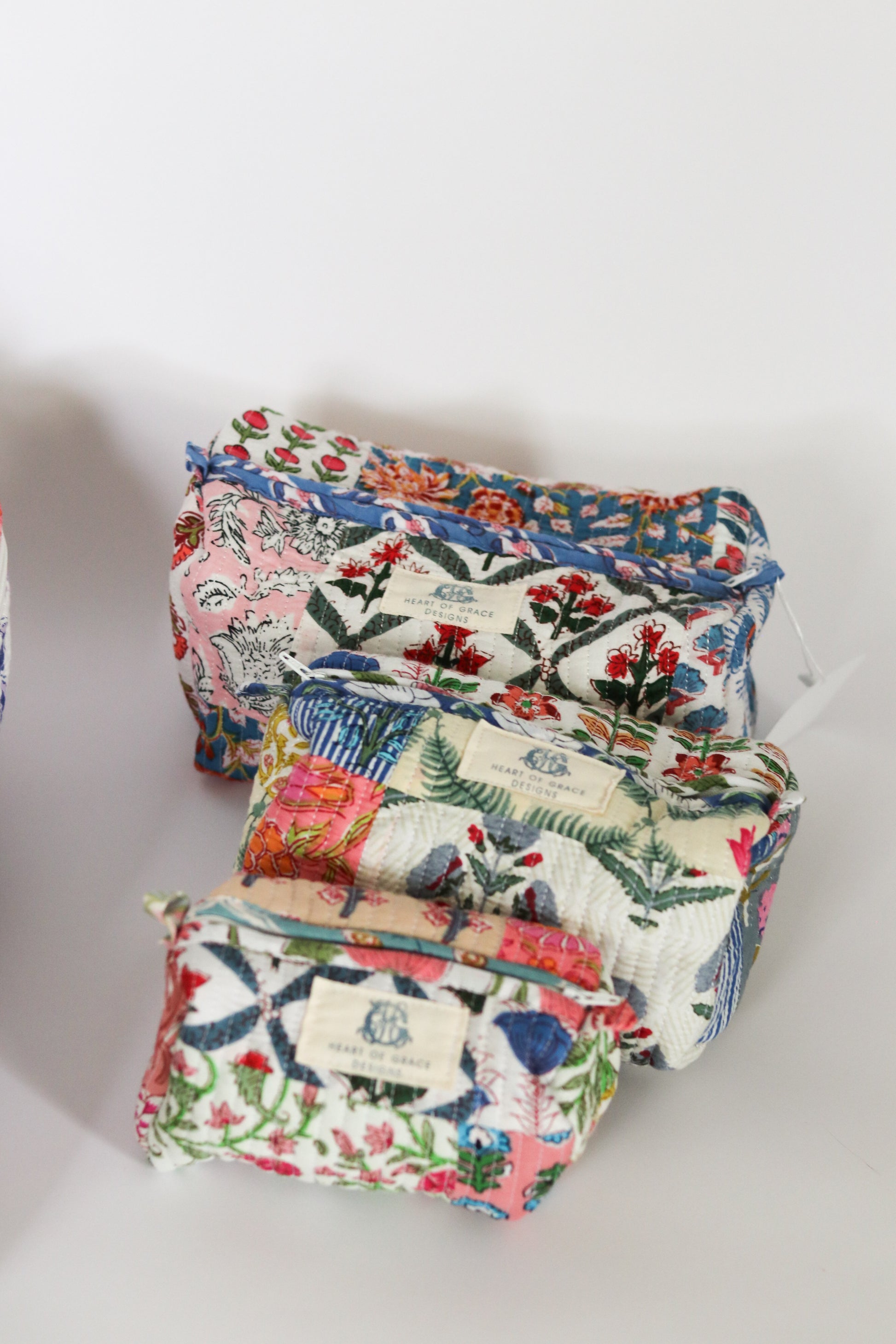 Wildflower Patchwork | Quilted Cosmetic Bags-set of 3
